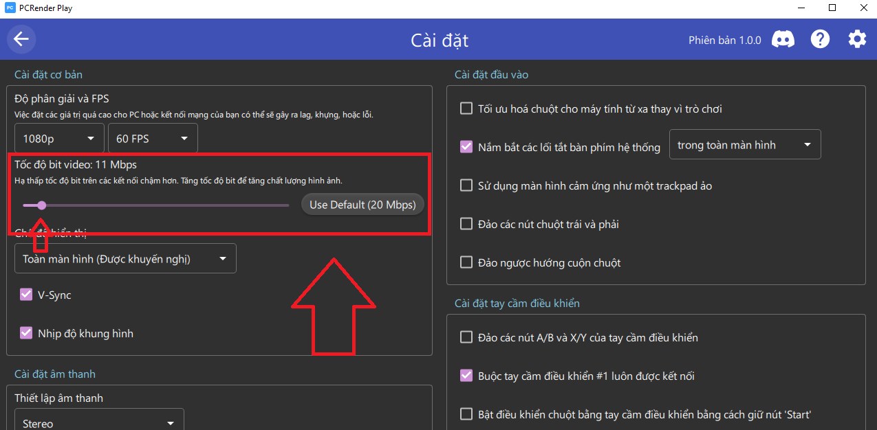 - Fix lỗi " Slow connection to PC Reduce your bitrate" khi dùng PCRENDER PLAY.
